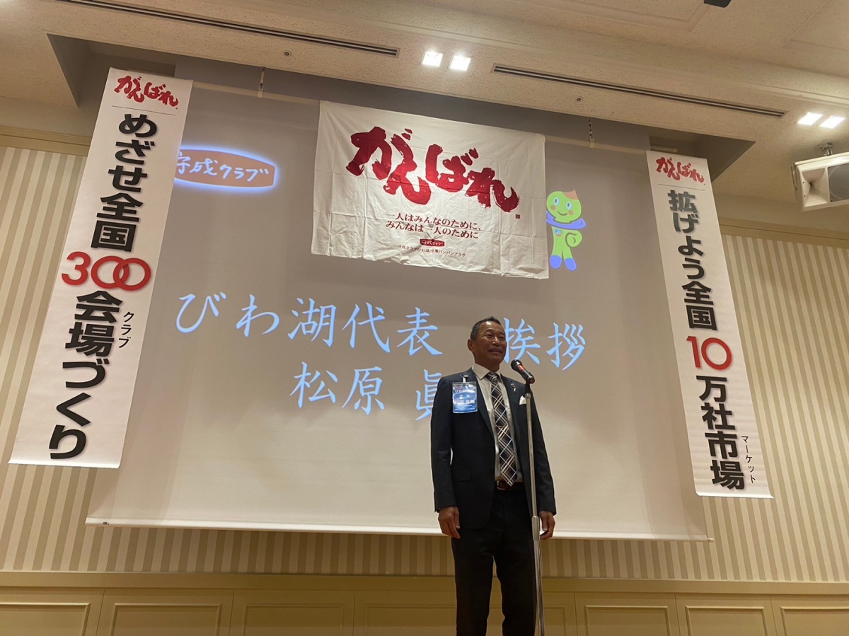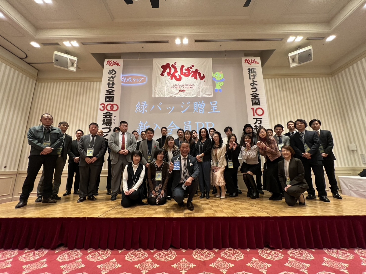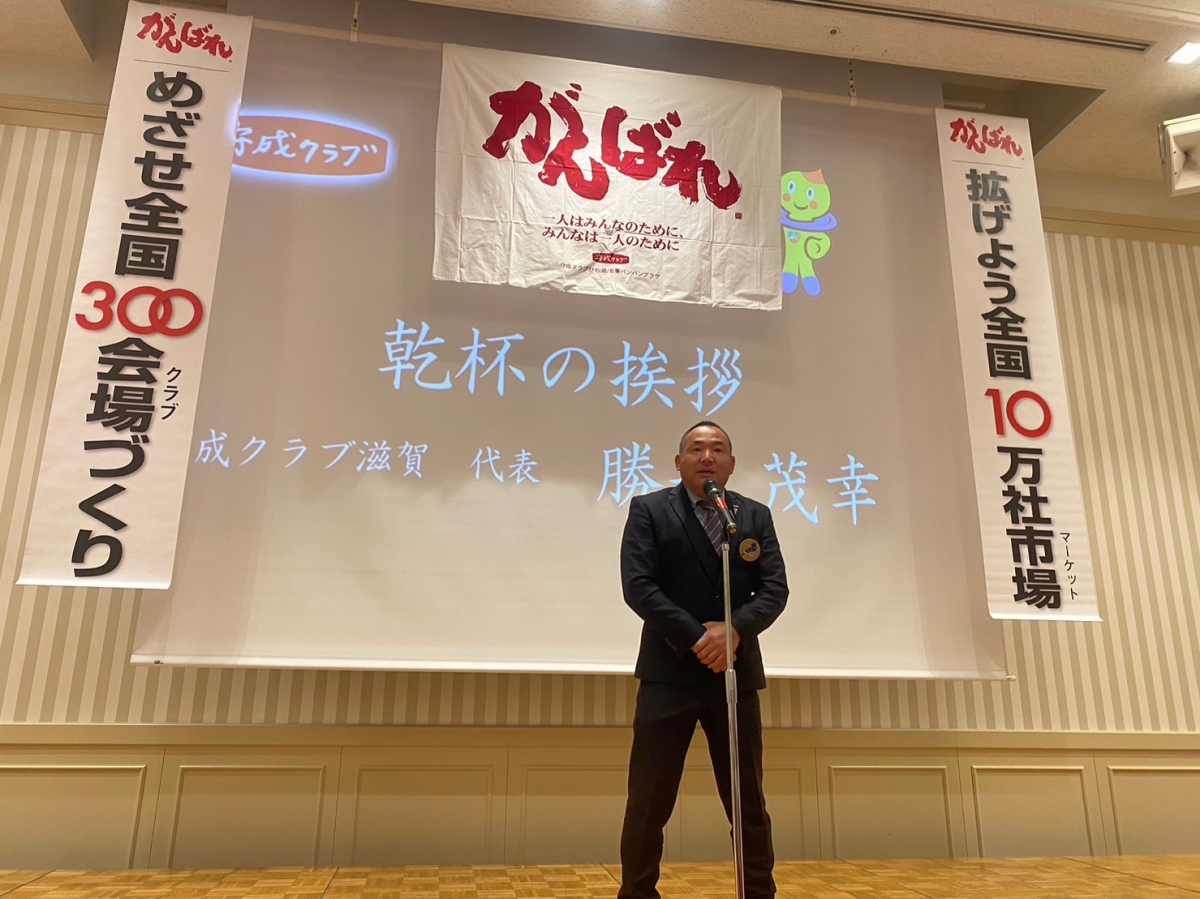 活動報告 ACTIVITIES [守成クラブびわ湖]トップページ活動報告第2回 守成クラブびわ湖 2023年12月例会 第2回 守成クラブびわ湖 2023年12月例会 守成クラブびわ湖第2回例会12月 90名の方にご参加いただきました♪ 代表挨拶 びわ湖会場代表 松原さん 乾杯挨拶 滋賀会場代表 勝井さん びわ湖会場 世話人自己紹介 第1回例会で入会された方への 緑バッジの授与&記念撮影♪ がんばれ楯授与式 世話人全員ががんばれ楯以上に なりました♪ 新規入会者の自己紹介 10名の方が入会されました♪ 出発進行! びわ湖会場世話人 香西さん 出発進行ーっ! オーッ! 2次会も多数ご参加いただきました♪ 一覧へ戻る